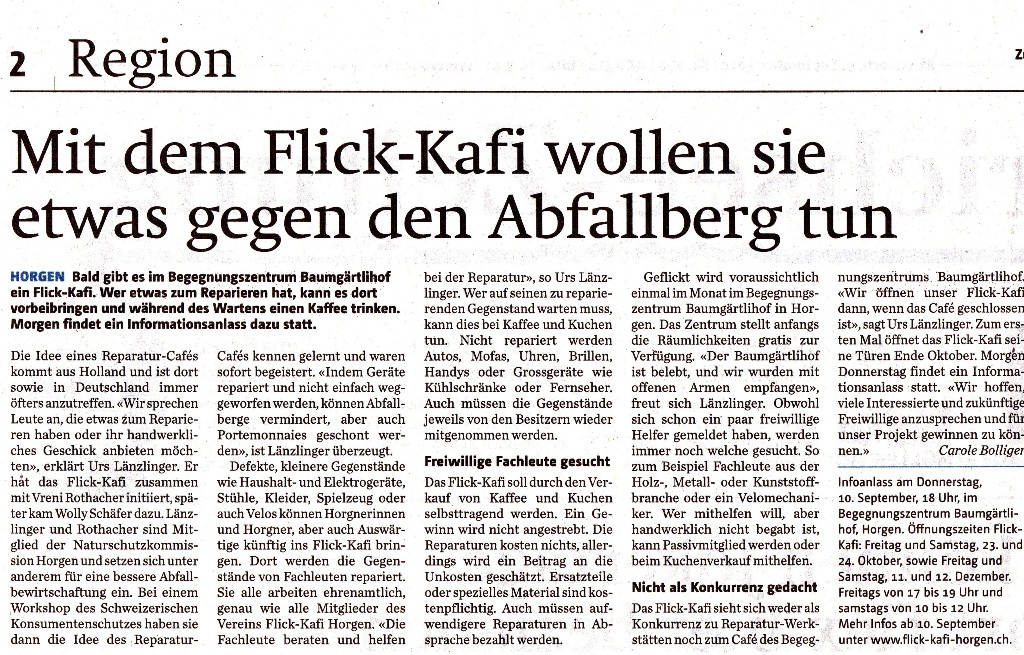 - Im Flick-Kafi in Horgen wurden 50 Gegenstände repariert und somit 151 Kg vor der Verschrottung bewahrt.